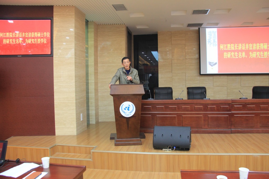3月22日下午,万象城官网2013届硕士研究生毕业典礼暨学位授予仪式在学院楼报告厅隆重举行。身着硕士服的毕业生从副院长刘长江手中接过了证书。从此,他们将在新起点上,扬起风帆,挥洒人生,贡献才智。