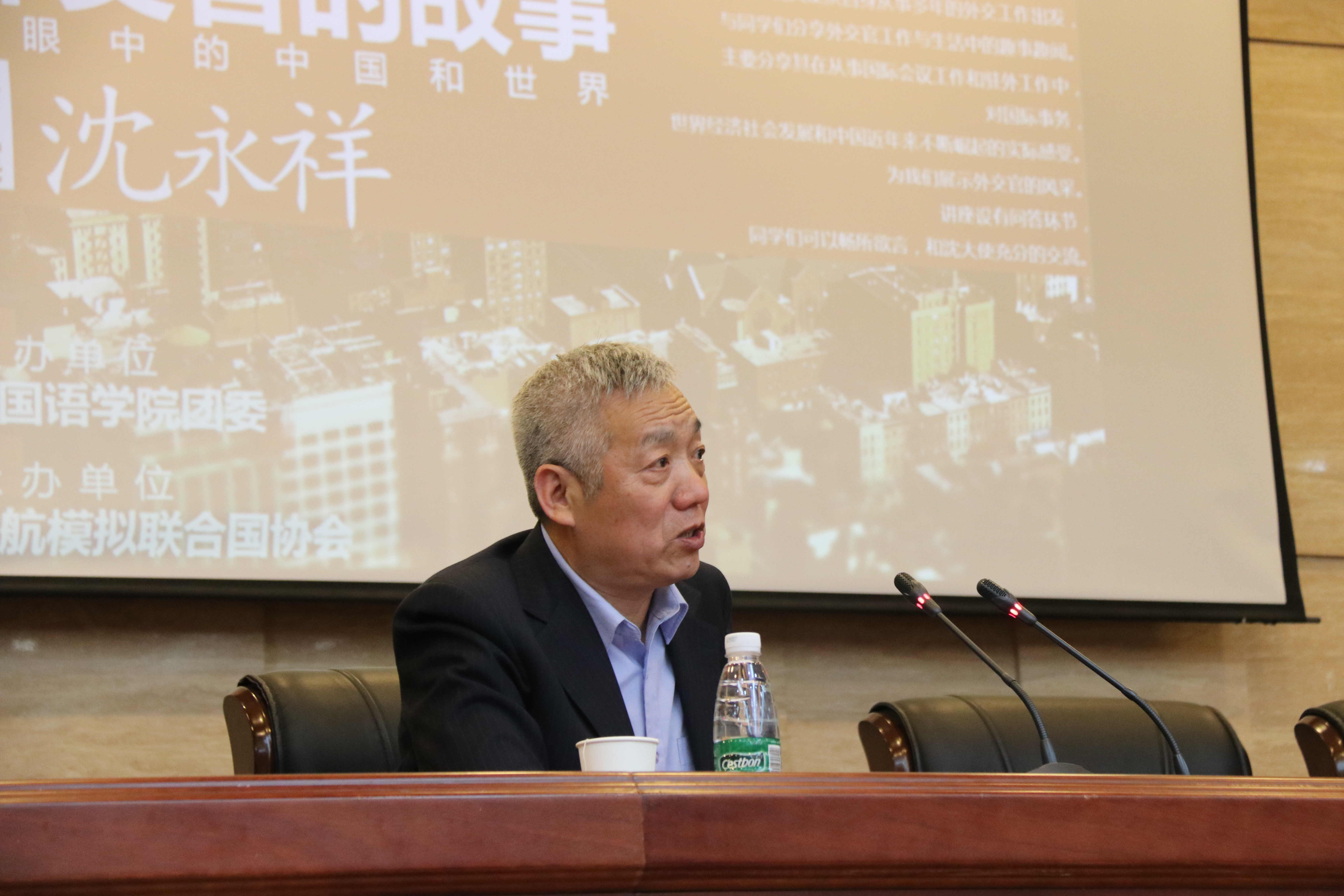 5月5日晚,由万象城官网主办、模拟联合国协会承办的“外交官的故事——我眼中的中国和世界”讲座在学院国际会议中心举行。本次讲座邀请到了曾任中国驻卢旺达特命全权大使的资深外交官沈永祥先生,为同学们讲述他外交官经历中难忘的故事,分享他眼中的中国和世界。学院副院长徐以中教授出席了讲座。