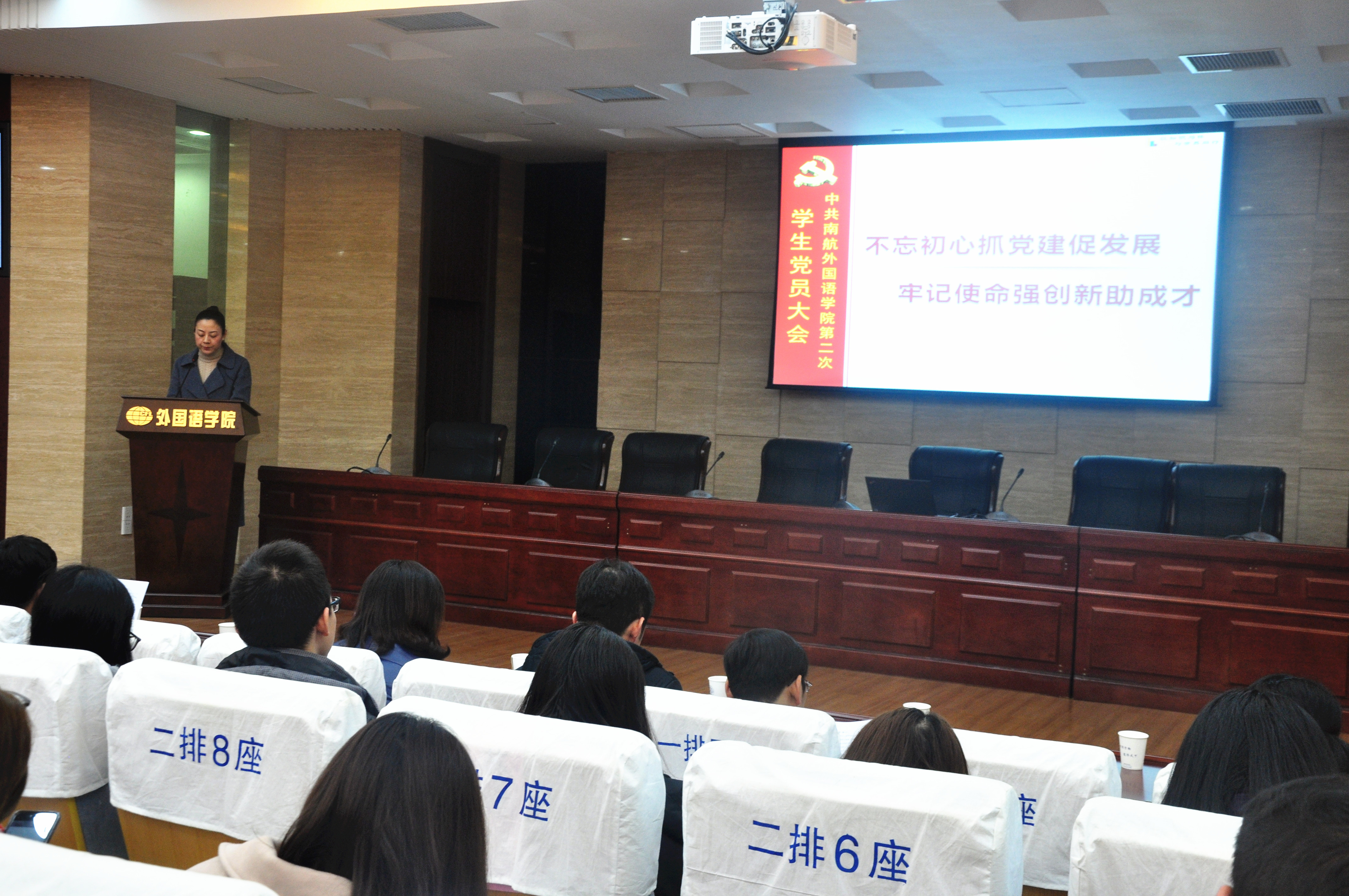 2017年12月22日中午,万象城官网学生党总支第二次党员大会在将军路校区召开。校党委组织部正科级组织员王宁,院党委书记刘健荣、党委副书记梁薇,英语系、日语系负责人,各年级辅导员和全体学生党员参加了会议。大会由院团委书记杨一主持。