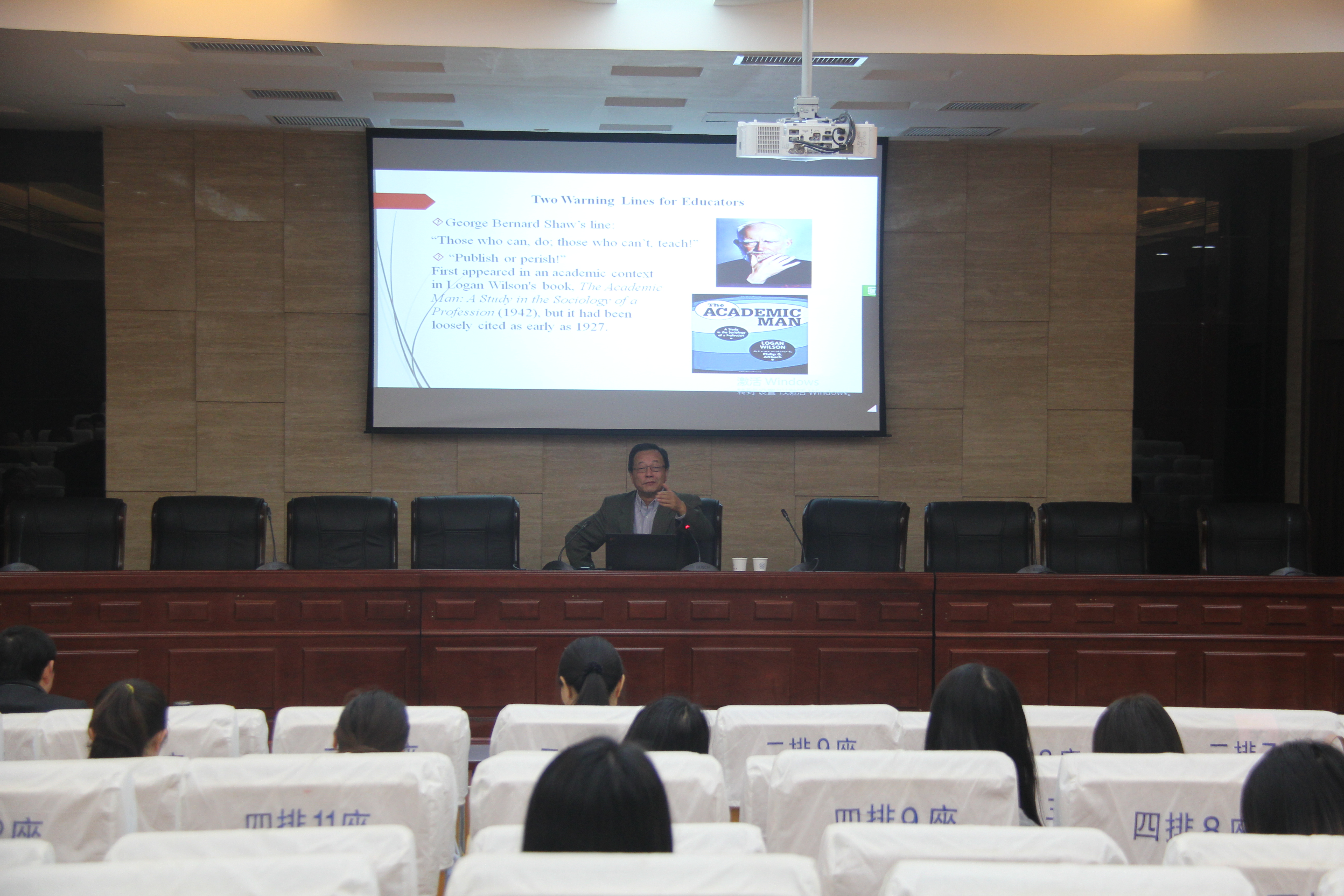 3月30日上午10点,在学院国际会议中心,哈佛大学英美文学博士、加利福尼亚州州立大学奇科分校教授张爱平做题为“Scholarly Research: An Act of Passion or a Means for Survival?”的英文讲座。讲座介绍了做学术研究的一些基本方面,如文本研究、研究方法的基本原则等;比较了中美学术研究的一些做法、标准和评价;交流了关于做研究的实用的、可持续的方法策略。