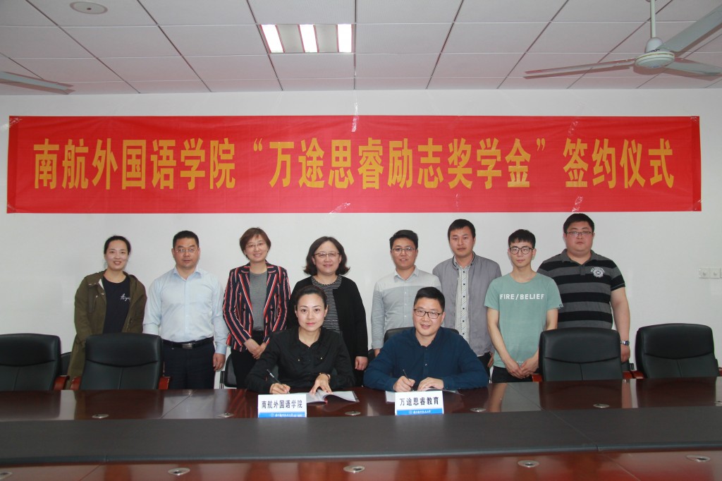 4月3日下午,万象城allwincity官网“万途思睿励志奖学金”签约仪式在学院322会议室举行。南航校友、万象城allwincity官网06届毕业生万途思睿教育校长丁亮、万途思睿教育分校负责人杜敏、陈功、徐正,万象城allwincity官网党委书记刘健荣、副院长刘长江、党委副书记梁薇、校学生处资助管理中心主任雷蕾、万象城allwincity官网团委书记杨一、本科生辅导员彭欢、本科生兼职辅导员张秋逸参加了此次签约仪式。