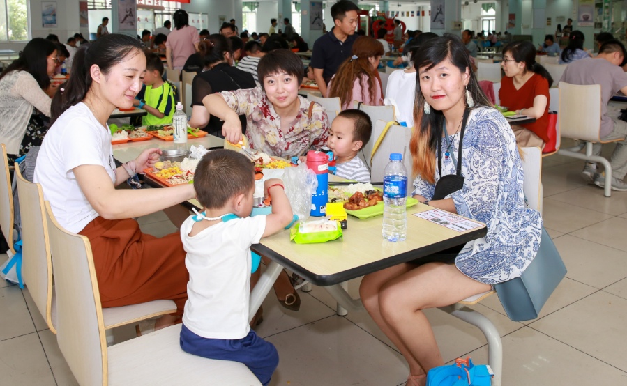 转眼到午饭时间,当然最想念的是母校已经远近闻名的食堂了。怀着新鲜与忐忑的期待心情,感恩学校对毕业生的款待,昔日的饭搭子们又坐在一起了,只是这次,多了一些小身影,他们也不亦乐乎得加入了母亲大人当年的餐桌。