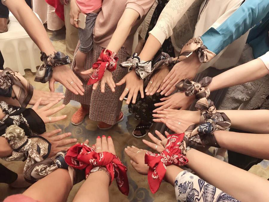 大家纷纷把丝巾系在手腕上感受仪式感,有同学则表示“我就是我,不一样的烟火。