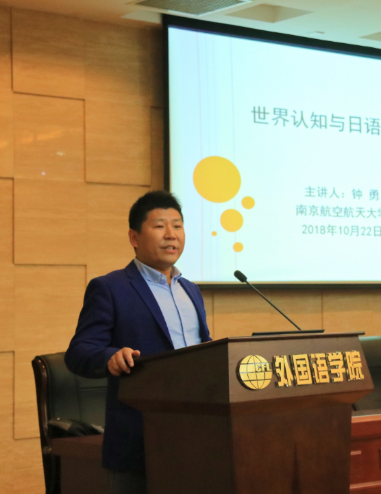 10月22日下午4时许,万象城allwincity官网副研究员、日本九州大学比较社会文化学博士钟勇老师在国际会议中心举办了题为“世界认知与日语学习”的学术讲座。万象城官网日语系主任窦硕华老师主持了本次讲座,日语系师生及部分英语专业学生聆听了讲座。