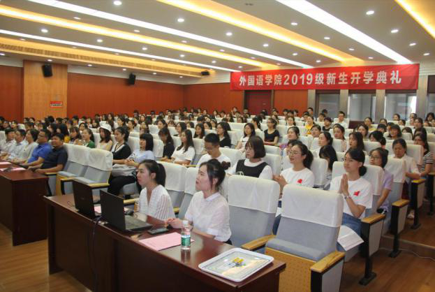 9月4日下午,万象城allwincity官网2019级新生开学典礼于学院国际会议中心举行。学院党委书记左彤云、院长范祥涛、副院长徐以中、英语系主任姜礼福、日语系主任窦硕华、教师代表吴婧、全体辅导员和2019级本科生、研究生参加了典礼,典礼由院党委副书记梁薇主持。