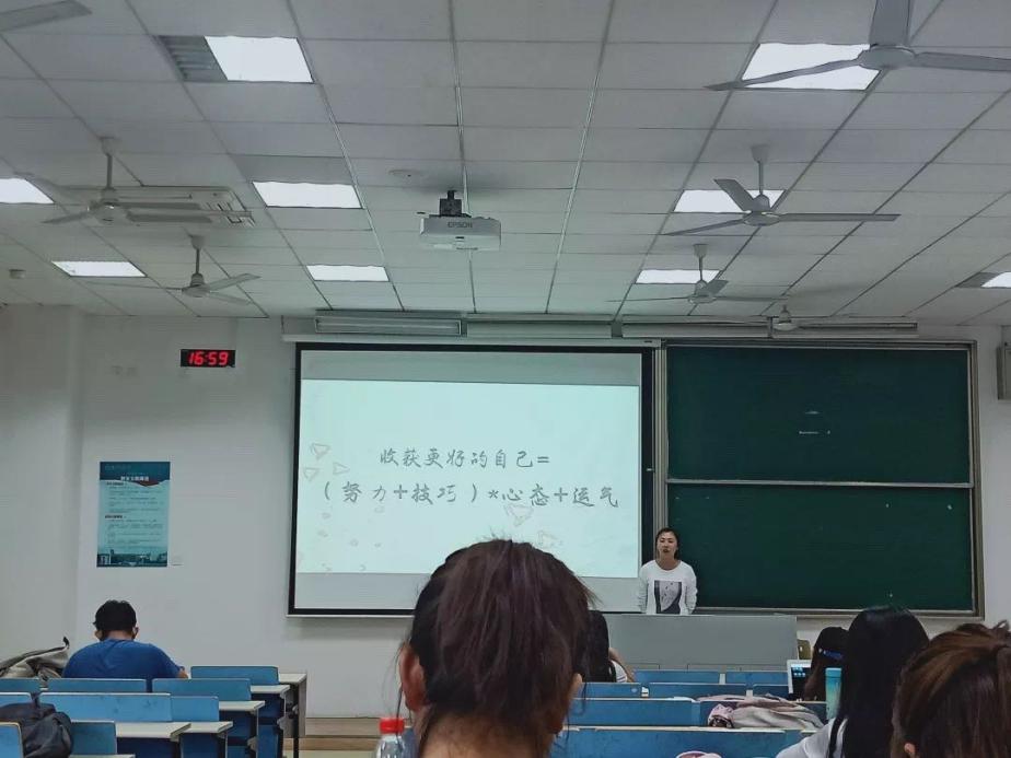 会议最后,辅导员盛嘉贤进行了总结发言。盛嘉贤首先对上一学年评奖评优获奖的学生进行了表彰,随后向全体18级学生提出新学期的期许,从“收获更好的自己”角度出发,谈了努力、技巧、心态、运气在成长成才中的重要性。