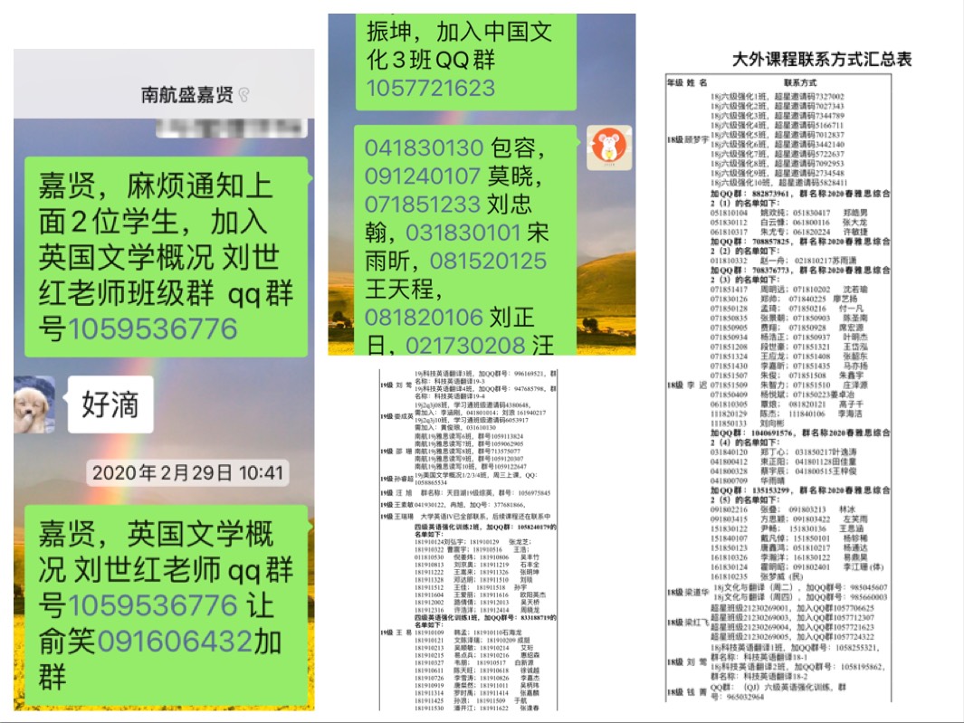 早在2月7日,万象城allwincity官网即按学校部署开启线上教学准备工作。其中大学英语公共课在线教学对象为我校天目湖、将军路两校区1万余名学生,涵盖全校各学院各年级学生,课程含基础必修、后续选修、民族班、民族预科班、辅修班等各种类型,面广量大,一时之间显得任务艰巨,学院党政领导迅速制定方案,由学院教学办统一协调,协同大学外语教学部全力保障教学运行。