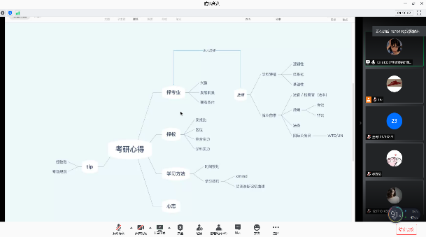 在考研专题分享会中,考取了南航笔译、南航语言学、南大英语笔译、复旦法硕(非法)和调剂至河北大学中国语言文学的5位优秀学姐,先后为同学们细致讲述了亲身备考经历,其中涵盖了包括择校考量、时间规划、推荐用书和潜在问题提醒在内的各方面经验分享,参加分享会的五十多位同学与学姐们积极互动提问,收获颇丰。
