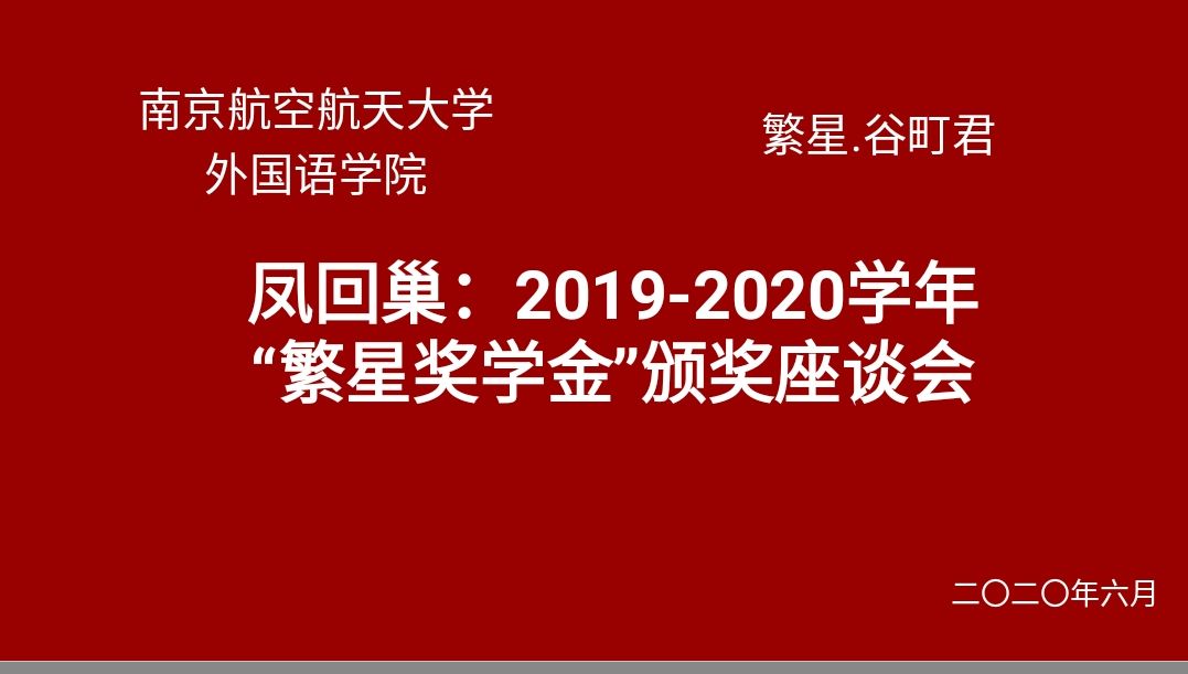 6月22日下午,万象城allwincity官网举行 “凤回巢”校友说暨“繁星奖学金”线上颁奖座谈会。“繁星奖金”由“繁星・谷町君”创始人及CEO、万象城allwincity官网2007届日语系毕业生刘洋设立。校友刘洋、学院党委副书记梁薇、辅导员彭欢及“繁星奖学金”全体获奖学生参加了本次座谈会。