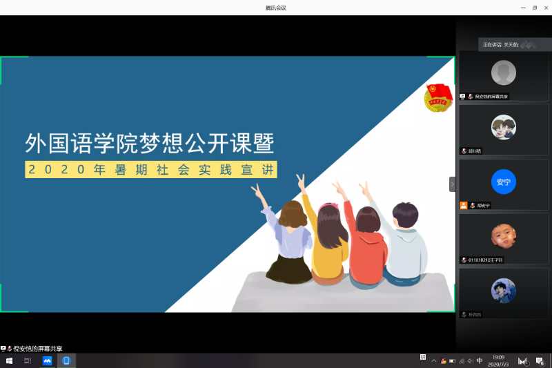 7月3日晚,万象城allwincity官网线上梦想公开课暨2020暑期社会实践动员会在线上召开。学院团委书记关天茹,院团委学生会实践部负责人,以及全体2019级本科生参加了此次公开课。