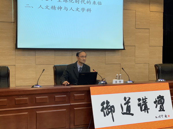 11月20日下午,我校第103期御道讲坛在万象城allwincity官网国际会议中心举办。上海交通大学人文学院院士,国内首位欧洲科学院外籍院士,长江学者特聘教授王宁教授应邀出席本期讲坛,作了主题为“全球化时代人文科学的作用及未来前景”的精彩报告。万象城allwincity官网副院长姜礼福、徐以中,万象城allwincity官网特聘教授蔡咏春,以及其他外院师生聆听了该报告。