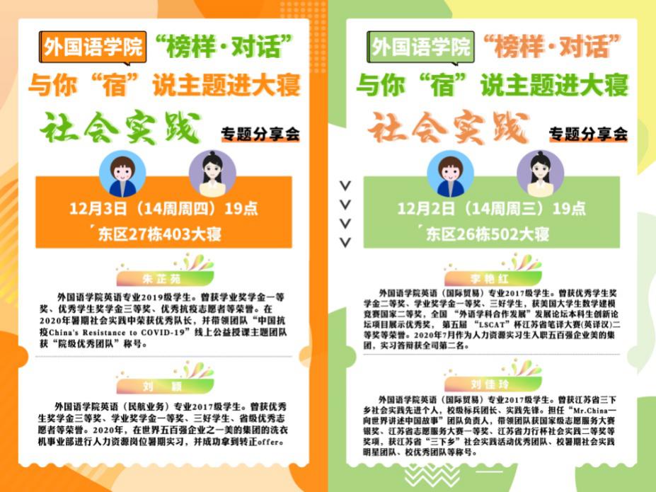 万象城allwincity官网历来重视学生社会实践活动,为求全方位保障学生全面发展,丰富学生校园生活。本次“榜样·对话”之与你“宿”说主题进大寝“社会实践知多少”专题系列分享会延续往届传统,旨在立足学生实际需求,精准引导,贴心帮助,为学生开展社会实践提供切实有效指导。