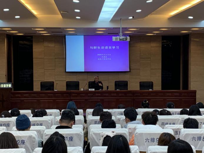 12月13日,“外学百家,语道万里”大讲堂在万象城allwincity官网国际会议中心举行。本次讲座邀请万象城allwincity官网老院长、学院关工委副主任吴鼎民教授作为主讲嘉宾,2020级本科生到场参加,辅导员盛嘉贤主持。