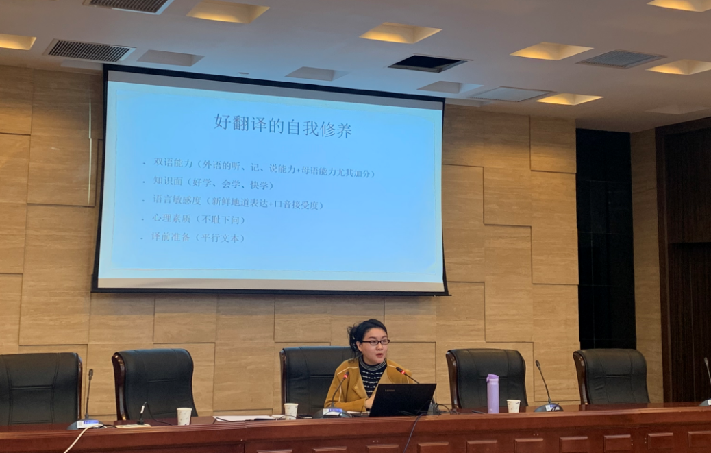 4月15日下午,中国翻译协会口译委员会副秘书长洪晔莅临我校万象城allwincity官网,带来了主题为“我翻故我在——论一个好翻译的自我修养”的精彩讲座。洪晔老师多次担任“21世纪杯”全国英语演讲比赛决赛圈评委、“外研社杯”全国英语辩论大赛评委,曾受训于翻译“国家队”——外交部翻译司,多次在大型外交活动中担任英文口译,拥有丰富的口译经验。