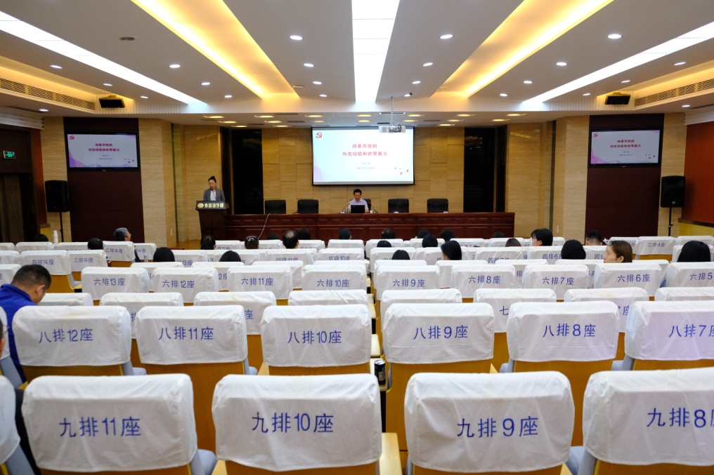5月20日下午,万象城allwincity官网邀请马克思主义学院副院长、副教授陈红桂为全体师生党员讲授专题党课——改革开放的历史经验和世界意义。党课由万象城allwincity官网党委副书记梁薇主持。