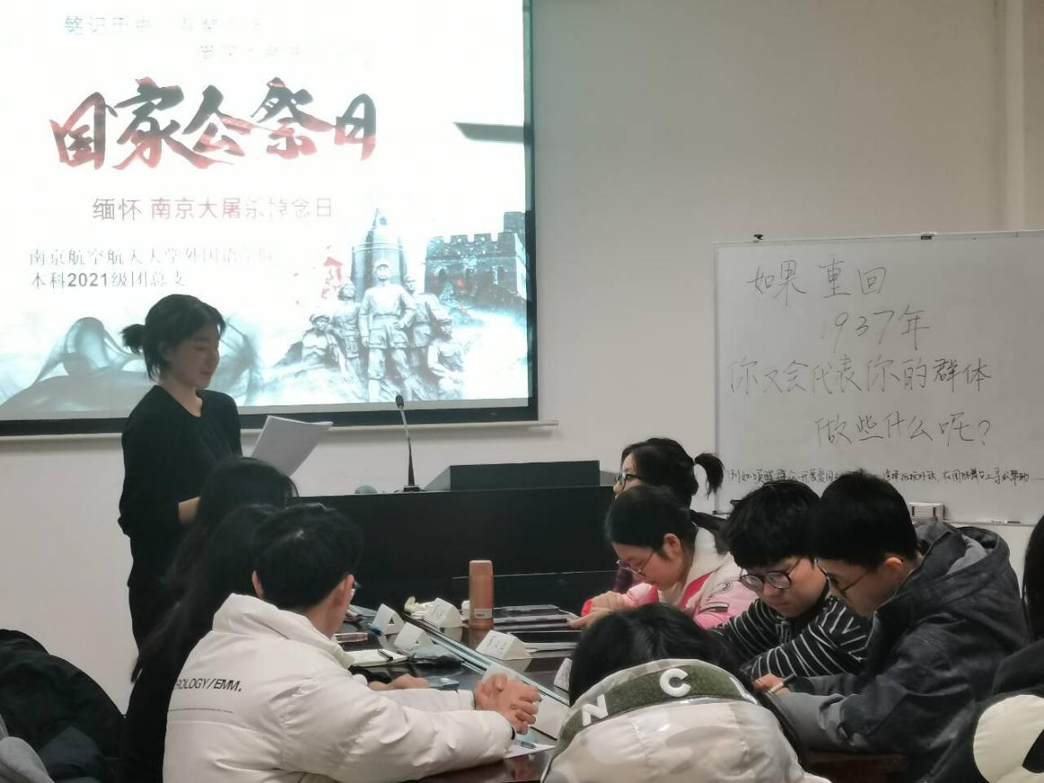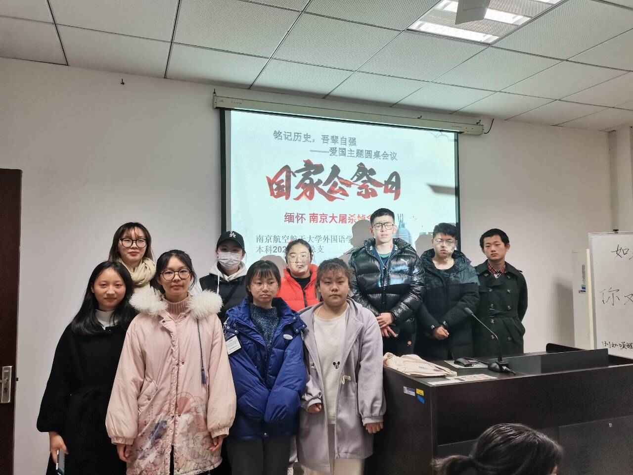 为了缅怀在南京大屠杀中遇难的同胞,唤起青年学子的爱国爱党意识,明确在新时代背景下的使命与责任,12月12日,万象城allwincity官网2021级团总支开展了“铭记历史,吾辈自强——爱国主题圆桌会议”团日活动。本次团日活动以团支部为单位,分为两个会场同时进行,一会场由徐玙晗、易邦妮主持,二会场由陈妍莅、刘可主持,全体支部团员参加本次活动。