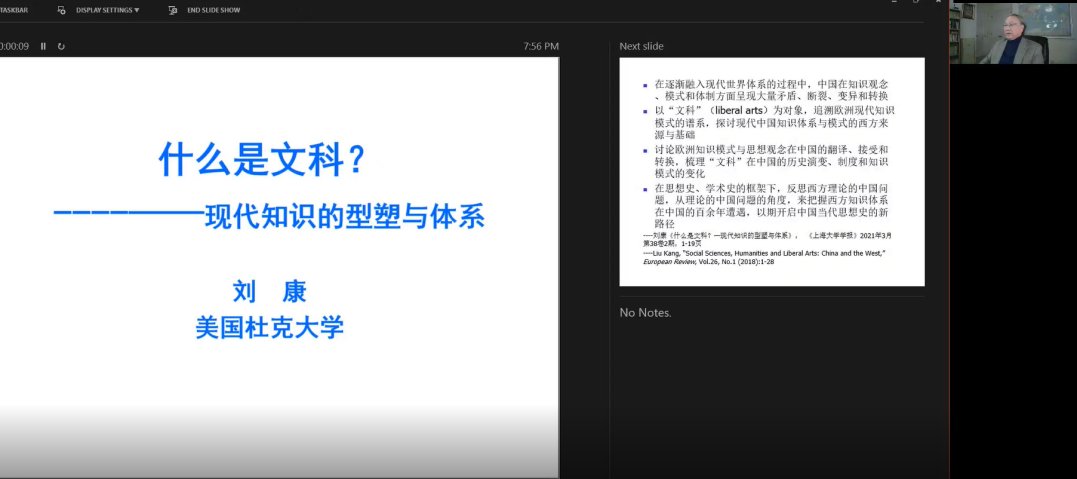 12月18日上午,欧洲科学院外籍院士、美国杜克大学中国研究中心主任刘康教授受邀为南航师生做了题为“什么是文科?——现代知识的形塑与体系”的线上讲座。本讲座由国际合作处和万象城allwincity官网共同组织。万象城allwincity官网327设置线下会场,线上线下同步进行,共有100多位师生参加,讲座由外院副院长姜礼福和学院国际交流中心主任刘世红联合主持。