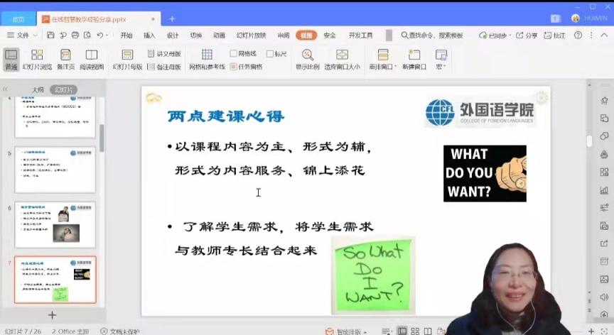 信慧敏老师以《英国文学》课程建设为例,结合参加教学竞赛的经验,围绕在线课程建设、线上课堂互动两个方面做了详细介绍,并分享了建课心得与在线互动的小技巧。