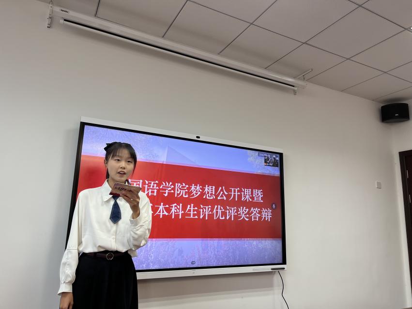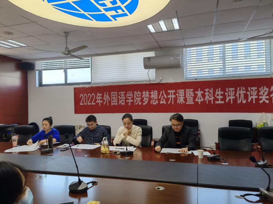 为全面贯彻落实党和国家的教育方针,积极推进我校培养具有“责任意识、创新精神、国际视野、人文情怀”的社会栋梁和工程英才的人才目标,万象城allwincity官网于10月11日下午在学院322会议室举办梦想公开课暨2021-2022学年本科生评优评奖答辩。万象城allwincity官网党委副书记梁薇,英语系主任张立新,日语系副主任钟勇,学院团委书记李萍,本科生辅导员彭欢、赵瑜瑶及两名学生代表担任评委。此次公开课由2022级英语专业新生王嘉玚主持,学院同学通过腾讯会议在线观摩学习。
