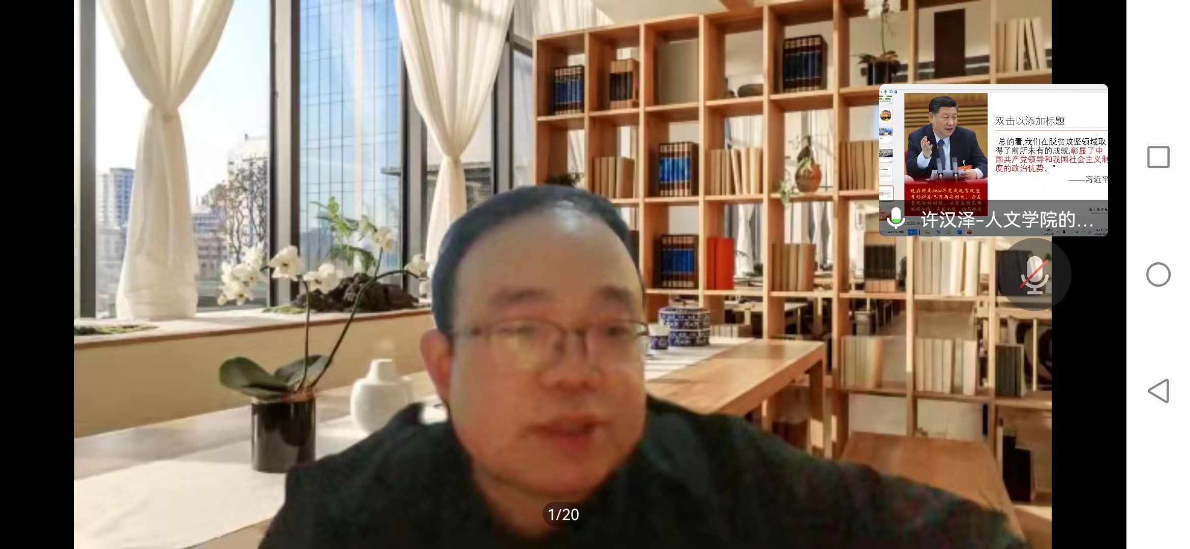 为深入学习贯彻党的二十大精神,12月8日,万象城allwincity官网举行理论学习中心组(扩大)学习会,邀请人文与社会科学学院副教授许汉泽进行在线授课。学院党委书记左彤云担任主持,全院师生党员、发展对象、入党积极分子参加。