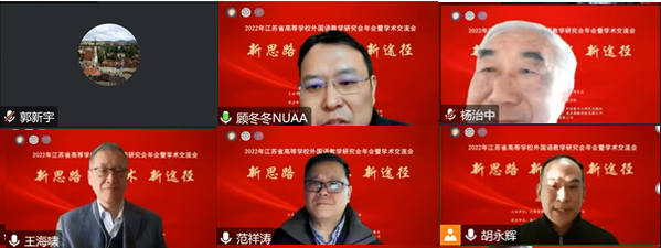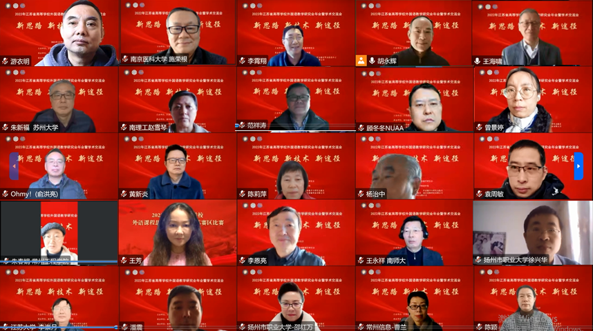 12月25日,主题为“新思路 新技术 新途径”的2022年江苏省高等学校外国语教学研究会年会暨学术交流会通过线上的方式隆重召开。本次会议由江苏省高等学校外国语教学研究会主办、我校万象城allwincity官网承办,研究会会员及来自全国的学者师生近百人参加了会议。