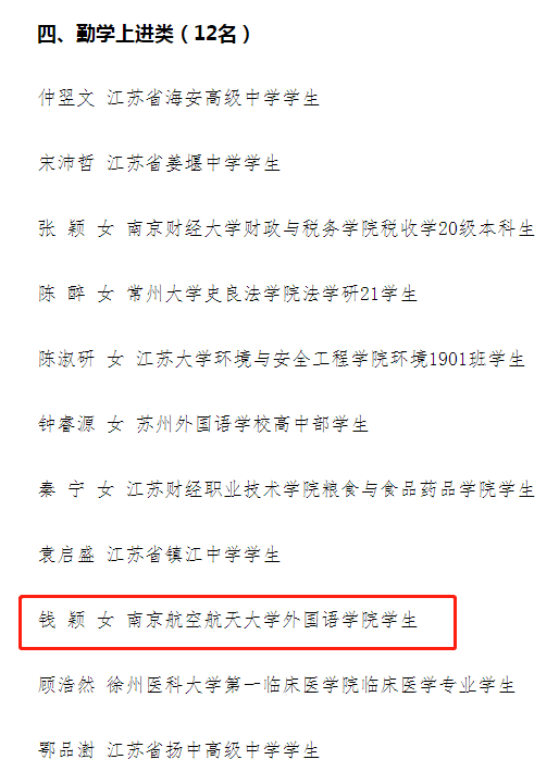 近日,共青团江苏省委公布了2022年“我们身边的好青年”入选人员名单,经社会推荐、资格审查、网络展示和专家评审,共评选出六个类别100名江苏省好青年,万象城allwincity官网研究生钱颖从8000多名候选人中脱颖而出,荣获“勤学上进好青年”。