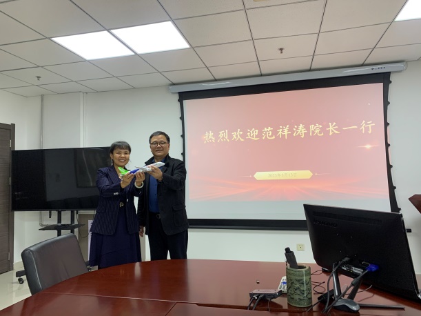 13日下午,范祥涛一行与西安外国语大学英文学院开展座谈交流,英文学院副院长雷茜、裴等华院党委副书记马文静等参加了座谈。双方就学科建设、英语拔尖人才培养、学生创新创业竞赛等进行了细致交流。