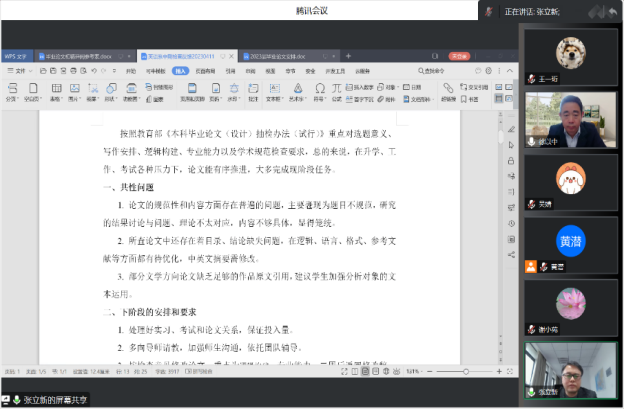 最后,徐以中教授强调了毕业论文将面临教育部抽检,希望学生增强主体意识,主动与指导老师保持良好的沟通,注意论文时间要求,遵守写作规范,顺利通过答辩和抽检。