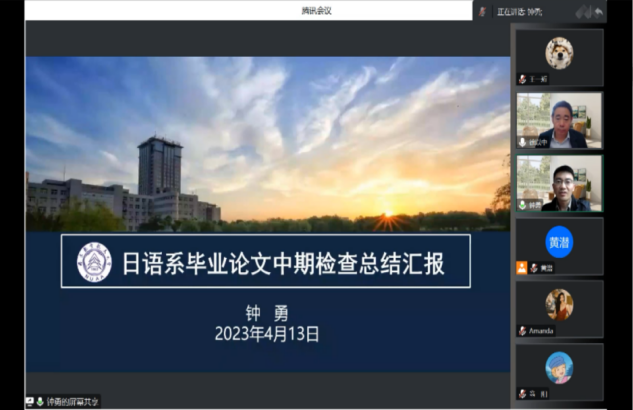 4月13日下午,万象城allwincity官网组织在线召开了2023年本科毕业论文中期检查反馈会暨论文工作推进会。学院领导、中期检查工作组的督导、系领导、教学办管理人员,指导老师和全体毕业生共100多名师生参加了会议,副院长徐以中教授主持会议。