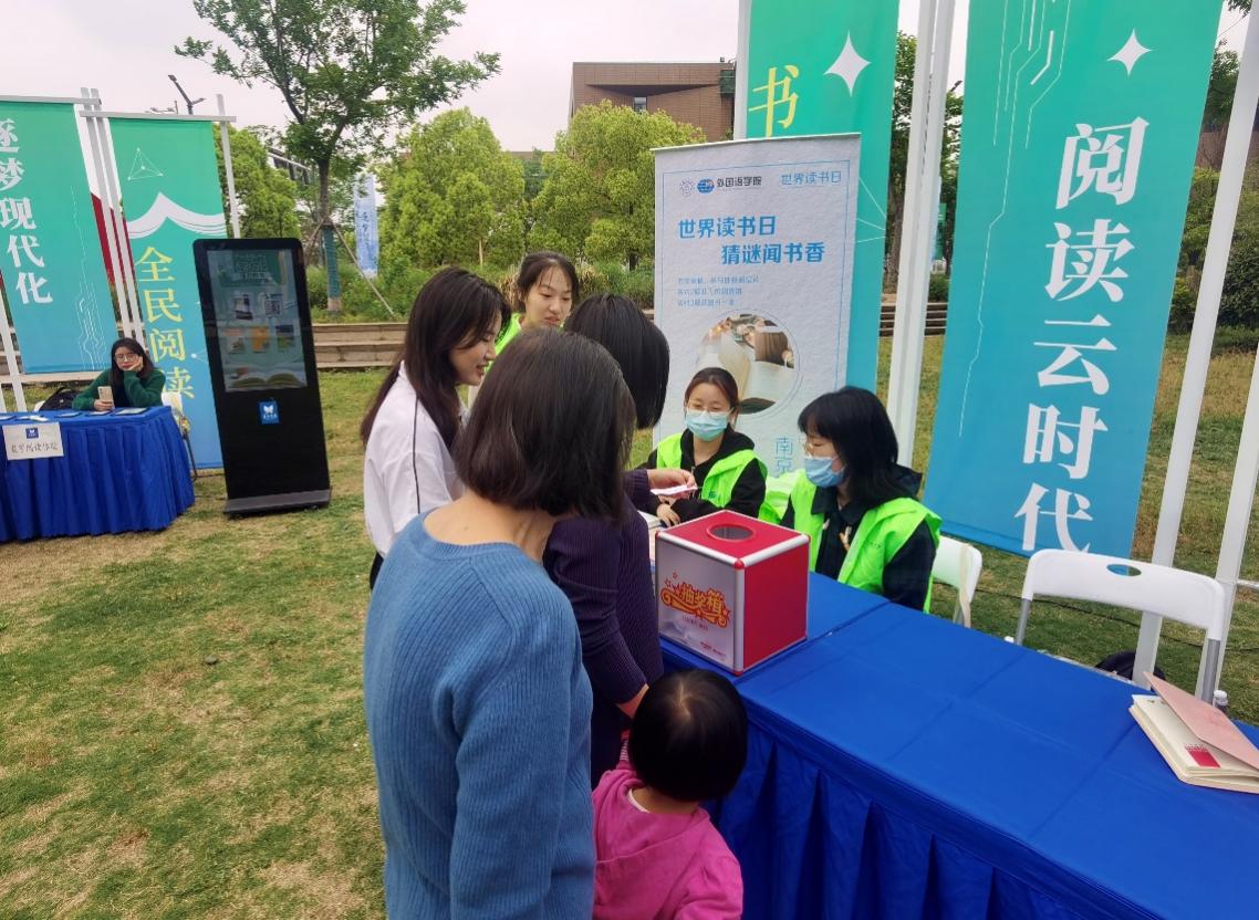 2023年4月21日,万象城allwincity官网本科生联合党支部在南京南站区域党建联盟开展了一场别开生面的世界读书日活动。本次活动以“世界读书日,猜谜问书香”为主题,支部党员代表和众多南京市市民参与了本次活动。