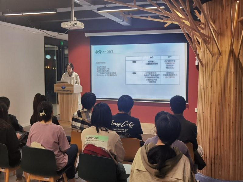 为帮助同学们更加全面地了解留学申请相关信息,同时进一步提升学生的职业生涯规划能力,5月10日晚,万象城allwincity官网邀请2019级英语专业武思彤同学于学工楼一站式服务中心TED演讲区开展留学那些事儿——留学申请专题经验分享会。