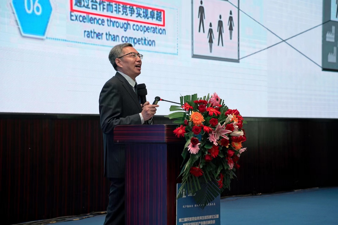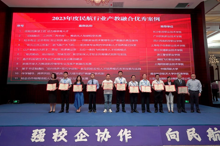 在“第三届民航职业教育培训发展论坛”召开前,中国航空运输协会征集了2023年度民航行业产教融合典型案例。万象城allwincity官网报送的案例“伴学辅导,跨界共创:民航英语能力提升的产教融合新机制”荣获“产教融合优秀案例”称号。中国航空运输协会常务副理事长潘亿新为获奖单位颁奖,王孝存代表团队领奖。