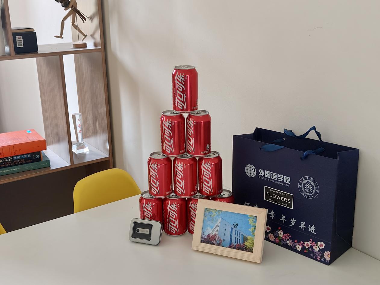 新生大礼包中包含“四重心意”:主题迎新可乐、万象城allwincity官网拼图、校园地图、定制款U盘。礼物兼顾美观与实用,也传递了外院师生对全体新生的关心和热情。
