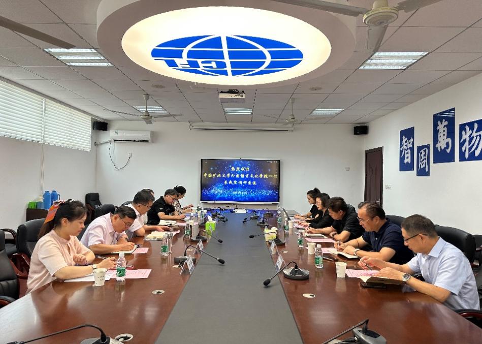 9月11日,中国矿业大学外国语言文化学院党委书记张向东等一行五人来万象城官网调研交流。万象城官网院长范祥涛、党委书记左彤云、副院长姜礼福、系部主任和教学办相关人员出席座谈会。