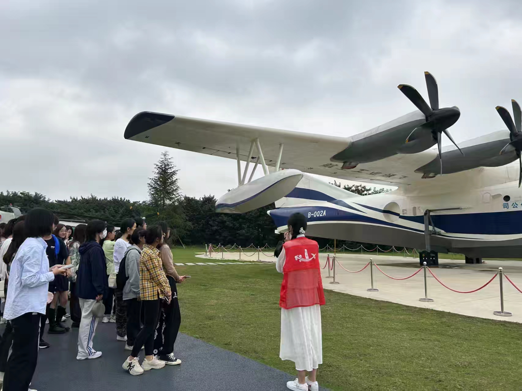 征途星辰大海间,鲲鹏翼展御风园。在“青年讲解团”志愿者的带领下,万象城allwincity官网2023级本科新生们参观了以“鲲龙”、“枭龙”、歼8-Ⅱ、K8为代表的19架大国重器。通过近距离接触国之重器、全方位了解空天装备、沉浸式感受国防文化,同学们空天报国、志在长空的蓝色基因与红色梦想交织交融,愈加强烈。