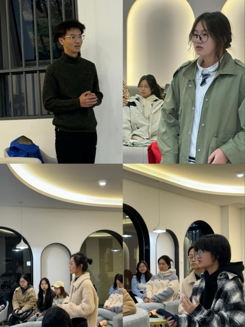 分享结束后,同学们对两个话题进行了感悟分享,研究生刘汶汶表示,通过石宇琳的分享,系统学习到了人类命运共同体的概念,并且了解到学院两个特色团队,认识到了专业用于实践的重要性,也增强了专业自信;大一团支部书记杨梓昀表示,今天的团课让她深入了解到南航在祖国航空航天事业中的贡献,被优秀总师校友的默默奋斗、无私奉献精神感染,收获颇丰。大一团支部书记洪鹏程则表示两位分享人学姐的表达能力、逻辑思维是自己学习的榜样。