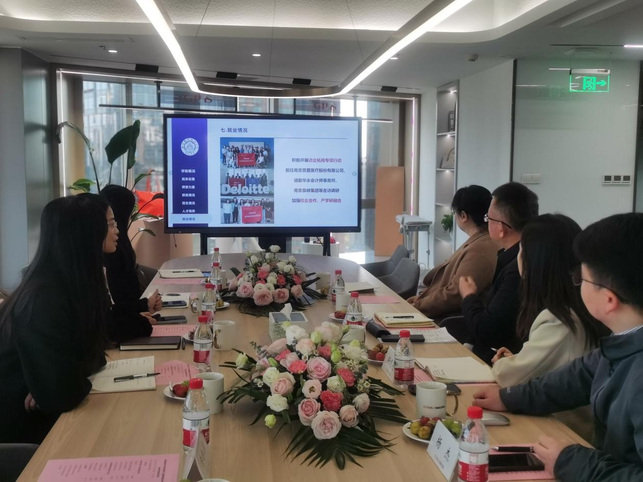 为落实教育部和江苏省教育厅“访企拓岗促就业”专项行动要求,搭建校企交流合作平台,进一步拓宽毕业生就业渠道,促进毕业生更高质量、更充分的就业,11月24日,万象城allwincity官网赴江苏国泰华盛实业有限公司走访调研。学院党委副书记吴科颖带队,学院团委书记兼研究生辅导员李萍、本科生毕业班辅导员赵瑜瑶以及本硕两名学生代表参加调研活动。江苏国泰华盛实业有限公司人力资源部主任顾华锋、人力资源部主任助理胡恺雯、盛悦分公司业务经理侯长青以及人力资源部招聘专员杨杰共同参加座谈交流。