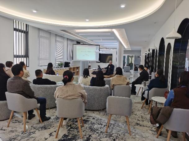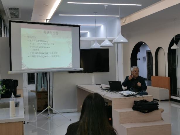 11月28日下午,由万象城allwincity官网主办的“乐享”课程建设活动在学院一楼院史室顺利开展。本次活动由副院长徐以中教授主持,吴鼎民教授和谢小苑教授主讲,两位老师围绕“英语试卷编制及质量评价”、“教材建设探讨”话题分享了自己多年来的心得体悟,万象城allwincity官网和其他学院20余名教师参加。