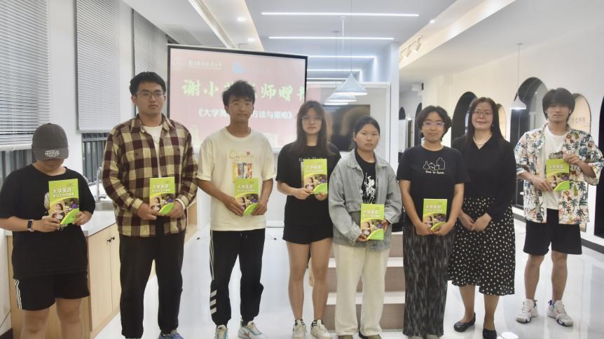 最后,谢老师指出,学习有法,但学无定法,策略因人而异,因时而变,学习策略不是诀窍,也不是灵丹妙药,有意识地调控学习策略才是英语学习取得成功的关键。谢老师为每位同学赠送了由学院老院长吴鼎民和她共同编写的《大学英语学习方法与策略》一书,希望它能成为同学们学习路上的良师益友,在书中找到学习的方法与问题的答案。