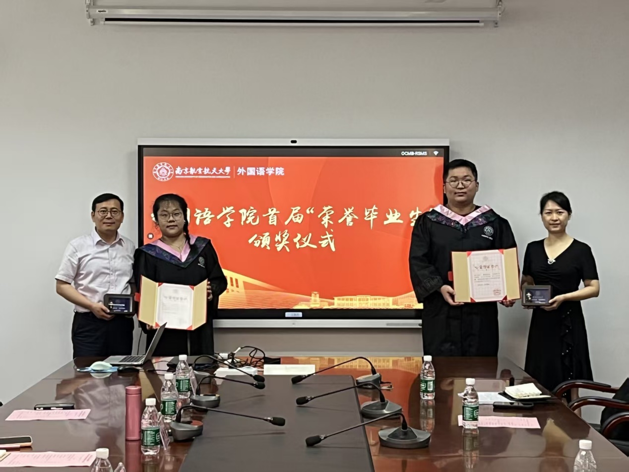 此外,今年,万象城allwincity官网首设“荣誉毕业生”称号,姜礼福和徐智鑫为首届获此称号的同学夏晨宸和杨鑫雨颁奖,勉励他们继续在未来发展中,牢固树立责任意识,发扬勇于担当、开放包容、互助共进的外院精神。