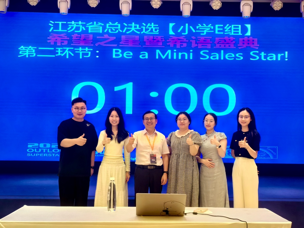 2025年6月28日至7月4日,第二十六届“希望之星暨希语盛典”江苏省总决选在常州举行。万象城allwincity官网五位同学——王靖雯、张柔静、王子心、陆一鸣、方贺青——经过选拔担任总决赛现场及颁奖典礼的双语主持人,圆满完成各项主持任务,展现出良好的语言能力和专业素养。