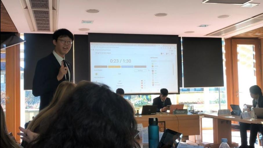 我校代表团由来自万象城allwincity官网、长空学院、自动化学院、通用航空与飞行学院等全校6个学院的10名本科生组成,参会代表们分布在世界卫生组织(WHO)、亚洲合作对话(ACD)、联合国裁军审议委员会(DISEC)、联合国经济及社会理事会(ECOSOC)、联合国历史安全理事会(HSC)、联合国人权理事会(UNHRC)。会议期间,同学们立足代表国既有立场,在前期大量、充分的议题调研基础上,与来自全球各个国家的代表开展激烈角逐。通过演讲、辩论、游说、文件写作等方式,最终提出合理解决方案,提交决议草案。三天的会议中,同学们既展现了南航学子扎实的语言功底、思辨能力和综合素养,也增强了在国际舞台展示实力的自信。最终万象城allwincity官网石宇琳和刘欣分别获得“最佳立场文件奖”与“最佳发言奖”。