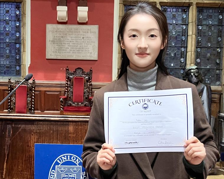 近日,在英国牛津大学举行的2025牛津国际模拟联合国大会上,我校代表团作为唯一来自中国的代表团,荣获“最佳立场文件奖”(Best Position Paper)与“最佳发言奖”(Best Speech),成绩居于非母语国家高校前列。